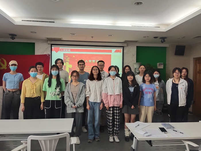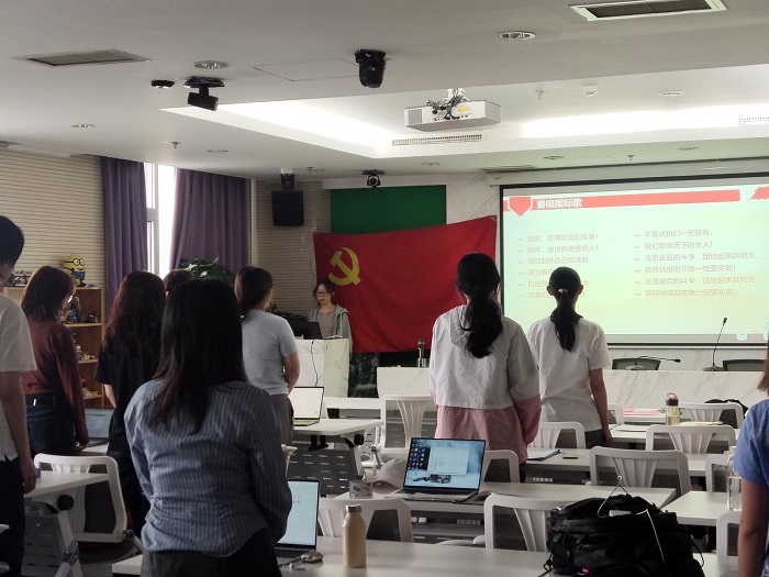 2023年5月20日下午17:00,污污漫画 本科生第一党支部在后主楼1318召开了2022-2023学年春季学期第一次发展大会。 首先,全体参会人员面向党旗起立,齐唱《国际歌》。随后,支部书记陈璐介绍发展大会流程。