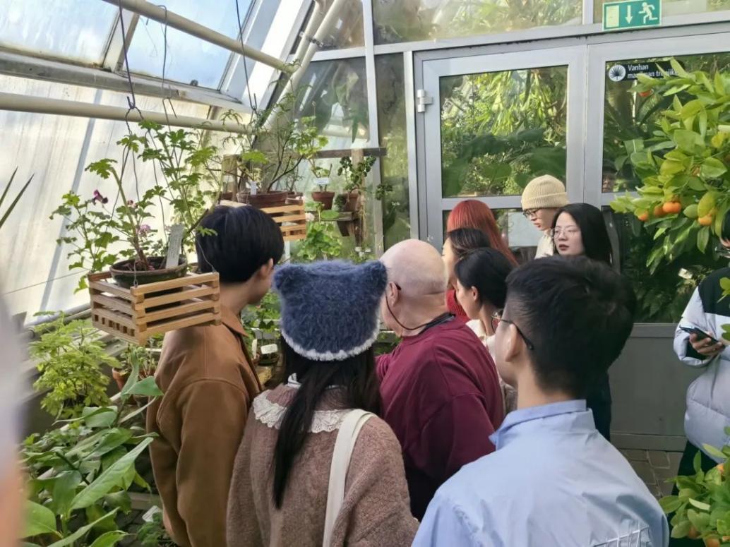 同学们随机分为两组,轮流参观图尔库大学植物园、体验科学教育活动。图尔库大学植物园根据温度、湿度和光照的不同,分为热带、温带等多个植物区。在各个植物区,同学们不仅见识到种类繁多的植物,还能了解某一类特定植物的进化史,认识它们的演变过程。 除了参观植物园,Laszlo Major老师还引导同学们发现自然与数学的联系,如蜗牛壳的对数螺旋线,并利用简单的教具演示动物如何搭建螺旋式房屋,便于同学们理解与体会。在类似的活动中,同学们逐渐领悟和掌握了如何设计并开展科学教育,丰富了教育教学技能。