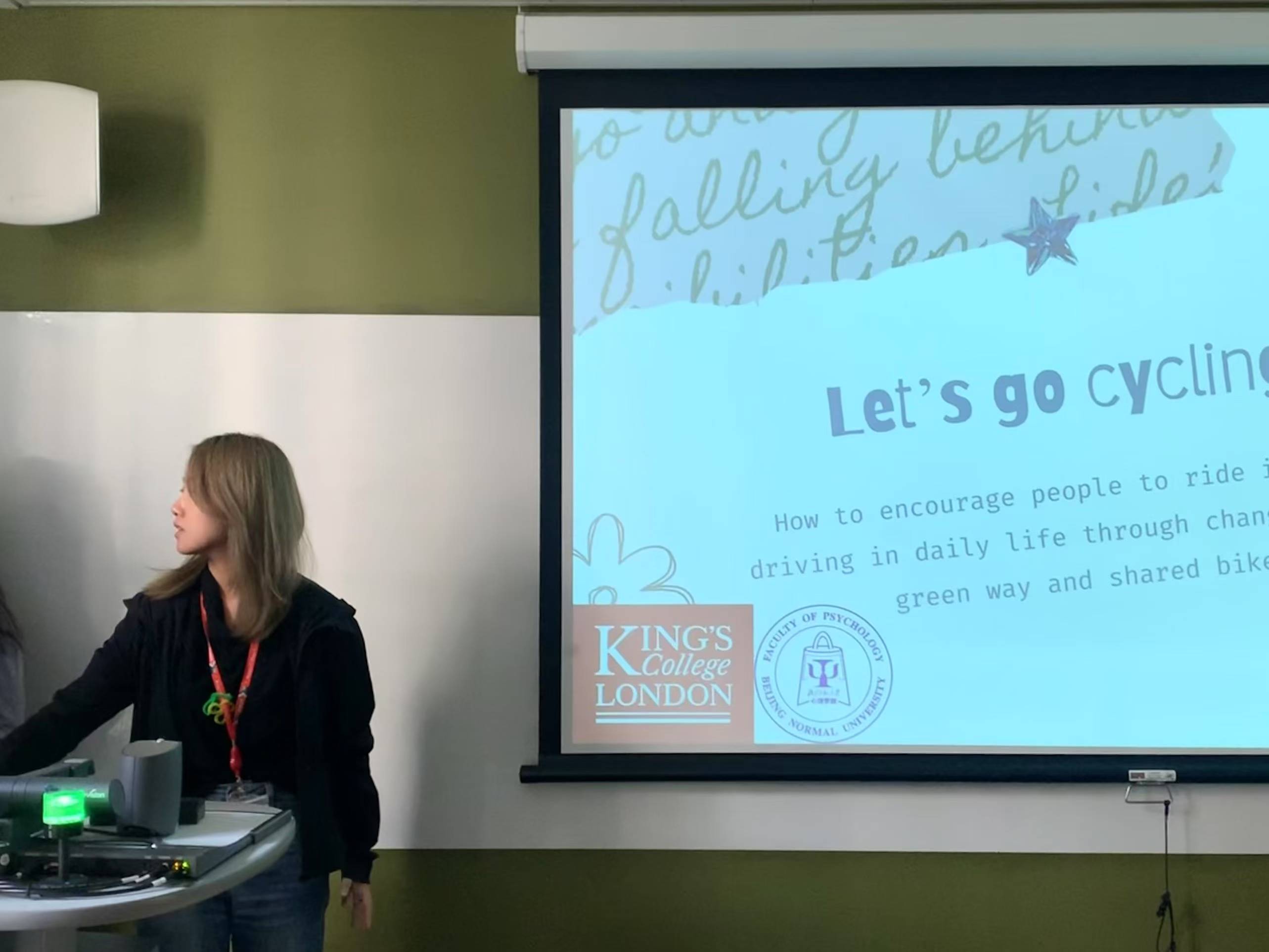 其次是小组实践部分,我们需要在两周时间内共同完成一次研究展示。我们四个人都是24级的新生,在专业能力和知识储备上都有欠缺,又因为彼此不相熟,在合作的最开始遇见了许多困难。但因为大家齐心协力,所以我们很快确定了“环保”的大方向,并在第一个老师的指引下把它细化成了“鼓励人们骑车出行”。第二个老师更是给了我们大量的课堂时间讨论,此外,她还一步一步教我们如何使用英国的文献网站,从确立搜索关键词到把关键词组合成组,帮助我们获得更全面且更符合需求的文章。最终我们找到了八篇扣题且年份较新的文章作为我们的参考文献。在方案打磨阶段,我们充分发挥团队互补优势,分工协作,把完整的研究拆成四个部分去做。每个人都认真完成自己的部分,有些小摩擦,但最终都因我们积极沟通而被解决,PPT也因其可读性获得了带队老师的认可。而对于在研究后端我们遇到的一些意料之外的挑战,第三位老师给了我们许多切实有效的建议,让我们的研究更上一层楼,甚至在展示环节让老师说出“听得我现在就想去骑车”。这段从分工协作到共同解决问题的过程,让我真切感受到,一次完整的学术实践不仅是对理论的验证,更是团队成员在观点碰撞中不断贴近现实、完善方案的成长之旅。 团队的成功离不开每位成员的努力,感谢所有人的辛勤付出与不懈努力,以及KCL老师和带队老师的无私指导。