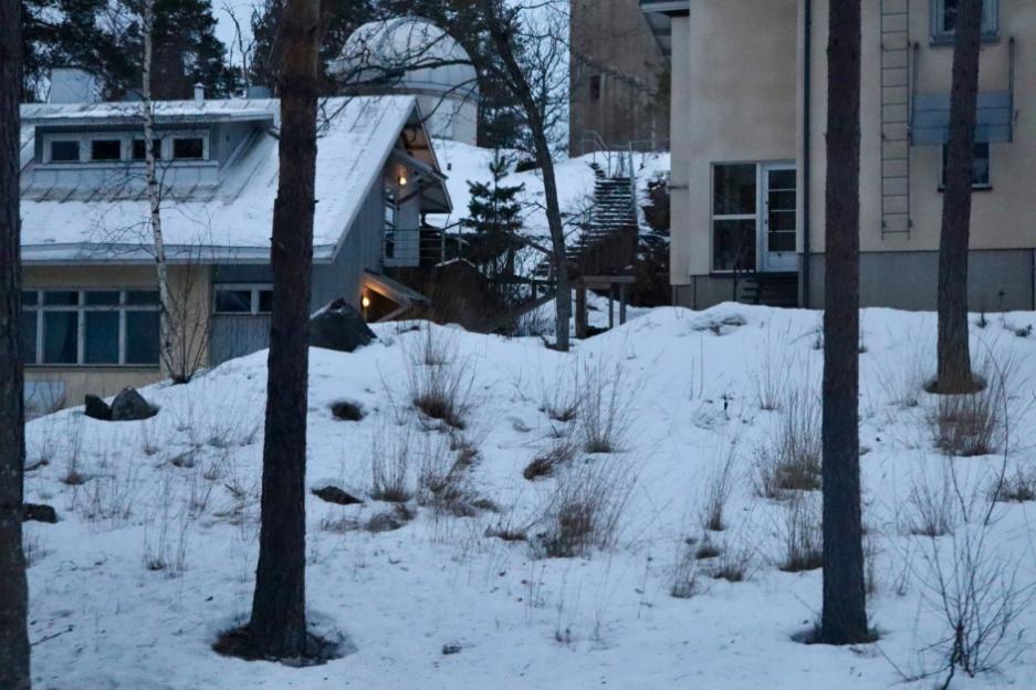 作为芬兰的前首都,图尔库的城市风格与赫尔辛基有很大差异,相对于赫尔辛基充满乡村风格,多为低矮楼房,图尔库更像是现代化都市,高楼林立,灯火辉煌。 在图尔库的第一站,我们前往Yuorla天文台参观。深入森林,与密林中我们见到一座尖顶的独立房屋,参观的第一节课,我们坐在观众席上仰视了极光形成的过程和存在意义,无不令人震撼,仿佛置身其间。看完了视频就是真正的观星天文台,由于大雪,上去的路程异常艰难,恰如天文学家观星的艰辛之旅。
