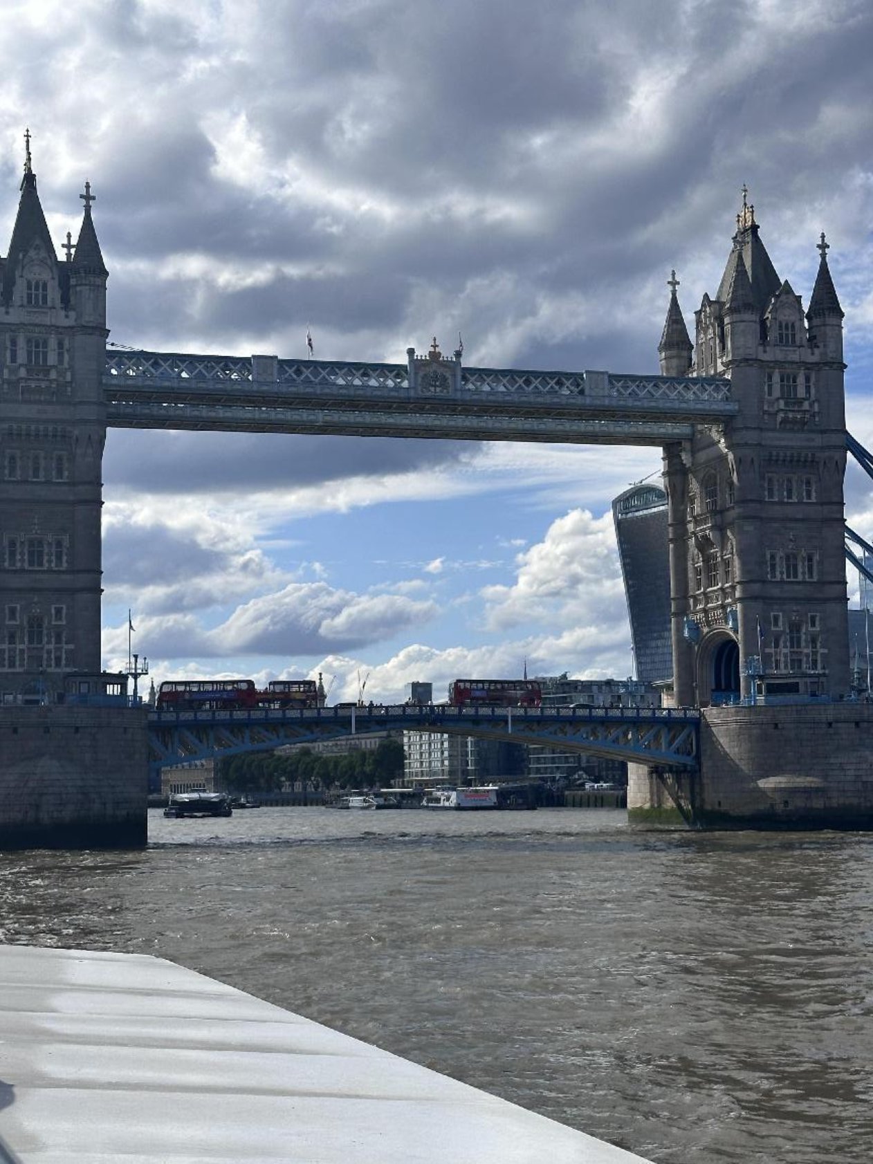 图3 Ghost Walking Tour 伦敦建筑 我至今仍记得在莎士比亚环球剧场观看《驯悍记》的震撼,那种身临其境的感觉让我对戏剧艺术有了更深刻的理解。而Comedy Show上的英式脱口秀则让我领略了英国人的幽默与智慧。在Rambert Dance的演出现场,我感受到了舞蹈的力量与美,那是一种能够穿透心灵、激发共鸣的艺术形式。 最令我难忘的是泰晤士河游船和格林威治之旅。阳光下的泰晤士河畔风景如画,我们乘坐游船缓缓前行,欣赏着伦敦的标志性建筑。在格林威治,我们探访了皇家海军学院、市集和天文台,感受到了这座城市的历史底蕴与人文情怀。这些经历不仅让我对伦敦有了更深入的了解,也让我更加珍惜这次难得的留学机会。