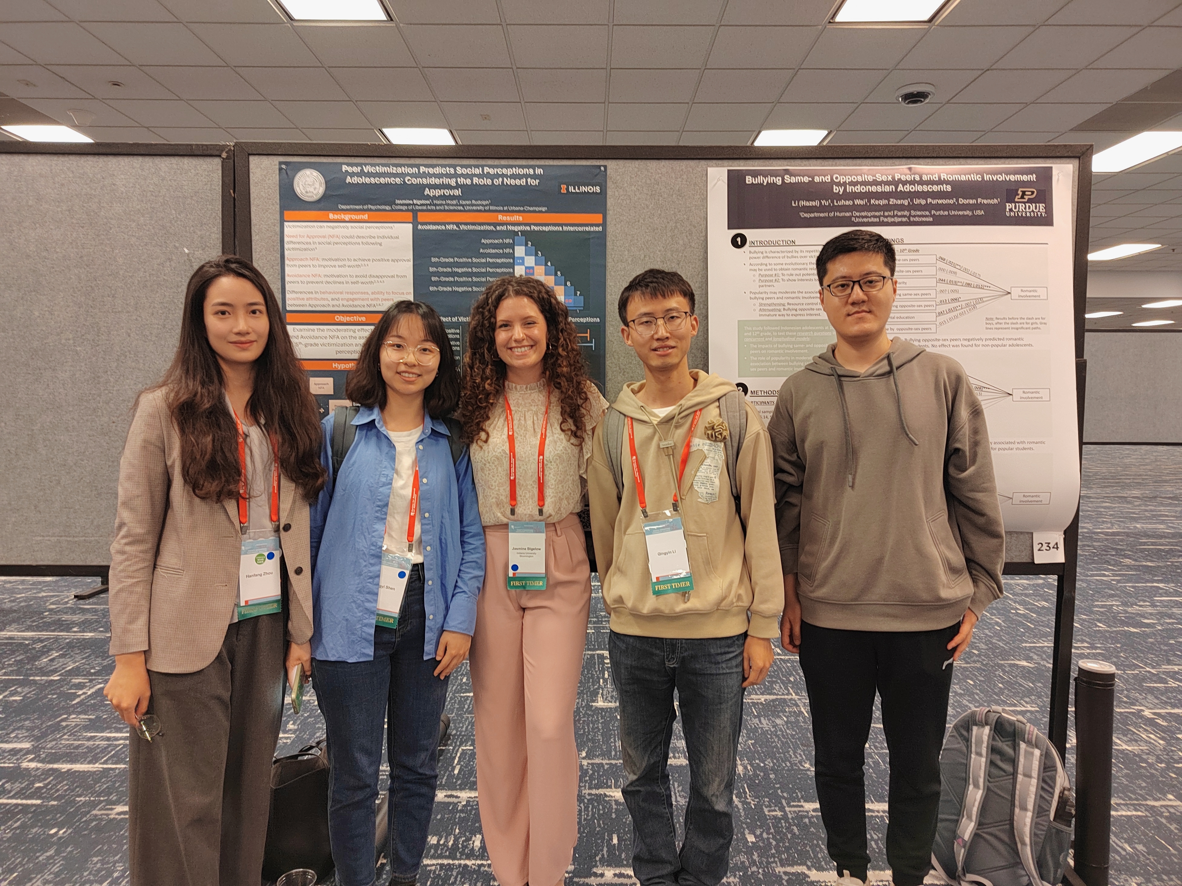 非常感谢污污漫画 能够资助我去参加这次在美国芝加哥举办的高水平的国际会议。这次国际会议与我同行的还有同一课题组的周含芳和申净旖,韩卓老师课题组的徐健捷。本次会议的正式举办时间为是2024年4月18日——4月20日。由于正式会议前一天下午还有会前工作坊,我们也很感兴趣,与我们的研究领域也很有关,因此也进行了注册。我们于北京时间2024年4月16日下午5点25从北京首都国际机场出发,北京时间2024年4月17日下午2点45到达美国旧金山国际机场进行中转,最终于北京时间2024年4月17日晚上11点21分(芝加哥时间2024年4月16日早上到达芝加哥机场,然后打车前往会议举办酒店——芝加哥希尔顿国际酒店。 在会议海报展贴现场中,有非常多研究者分享了他们最新的研究。令我印象深刻的研究是来自普渡大学的于荔的工作。下面我将简要进行介绍。 她的研究题目为在印度尼西亚青少年中欺凌同性和异性与浪漫参与的关系。欺凌的特点是其重复性和欺凌者对受害者的权力差异。根据进化心理学的观点,欺凌有时是作为一种寻求浪漫关系的一种手段。目的有两个:其一是排除潜在的竞争者,其二是对潜在的伴侣表达出兴趣。在通过欺凌去获取浪漫关系时,存在一些潜在的调节因素。换句话说,受欢迎程度可能调节欺凌与浪漫参与之间的关系。存在两种调节方向,根据资源控制理论,受欢迎程度可能会加强欺凌与浪漫参与的关系。另一方面,欺负异性同伴是一种不成熟的表达兴趣的方式。因此,受欢迎程度可能会缓解欺凌与浪漫参与的关系。为了探讨这些研究问题,该研究对10年级和12年级的印度尼西亚青少年进行了追踪。最终样本包含459名10年级和738名12年级的青少年。大部分的青少年来自中高产阶级家庭。研究者对这些样本进行了多组路径分析。最终结果显示: 在10年级样本的横断关系中,受欢迎程度调节欺凌同伴与浪漫参与的关系,也就是说,在受欢迎程度的群体中,欺凌同性同伴与浪漫参与呈显著的负相关关系。而在不受欢迎的群体中,欺凌同性同伴与浪漫参与没有显著的关系。 在12年级样本的横断关系中,结果恰恰相反,在不受欢迎的群体中,欺凌异性同伴与浪漫参与呈显著正向关系,在受欢迎的群体中,欺凌异性同伴与浪漫参与没有显著关系。 在纵向关系中,在受欢迎的群体中,欺凌异性同伴与浪漫参与没有显著的关系。总体而言,这项研究从同性和异性同伴的视角发现了欺凌对浪漫参与的不同影响,具有很切实的实际意义。