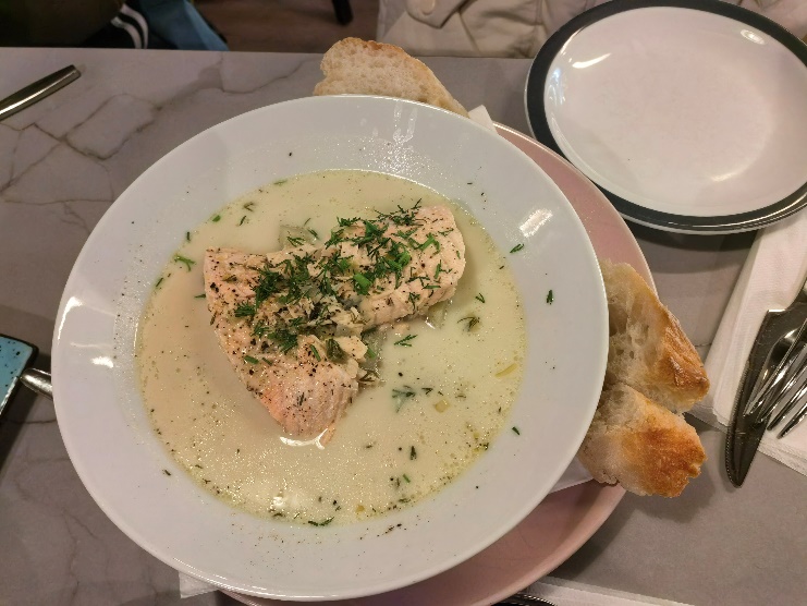 第二天,我们前往了图尔库大学的校园。在上午,我们以小组为单位模拟人类与机器人的下棋对战,并训练各自的机器人。Major老师寓教于乐,通过模拟互动的方式让同学们思考,也启发了我们如何用游戏的方式去引导学生进行自主的学习。探究了人造卫星的内在结构,拓展了我们的知识面。在下午,我们参观了图尔库大学动物博物馆,其中馆藏标本的展出涉及到从昆虫到灰熊,各种存在于芬兰本土的动物,以及一部分世界其他部分的动物。最后,回到教学实验室之后,老师为我们准备了液氮制作冰淇淋,为我们的芬兰之旅画上了一个完美的句号。 图尔库的学习不同于赫尔辛基的学习,主要是各个方面相对于教育的理论以及对于各个科目对于教育的方法的教授为主。在图尔库,对我们更多是置于学生角度的学习,我们通过老师对我们的教学,启发自己如何在以后的教学工作中进行换位思考。怎样的教学方式才是适合学生的,怎样的教学方式更能激发学生的学习欲望。 芬兰风土人情 芬兰作为一个处于世界的北端的国家,也是世界上幸福程度最高的国家。虽然此次访学,我们只前往了芬兰南部的两座城市,而没有前往热门的圣诞老人村洛瓦涅米,也没有机会看到北欧的极光。但是,赫尔辛基和图尔库的芬兰风土人情,其与中国的建筑风格,气候情况,人文风情的极大差别,让我了解到了世界不同风光的魅力。 在赫尔辛基,在课余时间,参观了赫尔辛基的红教堂和白教堂,红教堂叫乌斯别斯教堂,是传统的东正教教堂,其内不允许拍照。但繁复的建筑风格,还是给人带来了极大的震撼。除了红教堂,白教堂也是赫尔辛基的著名景点,白教堂也叫赫尔辛基教堂,是赫尔辛基最大的教堂,以通体白色而得名白教堂。洛可可风格的建筑给人以奢侈观感,与中式古建筑风格大相径庭的典型的欧洲风格也是令人叹为观止。除了古代建筑,我们同样参观了赫尔辛基大学图书馆,和颂歌中央图书馆。两座图书馆都是开放的图书馆,游人可随意进出,曲线在这两所建筑中随处可见,不同曲线的组合(图4),使得现代化的建筑也有了一些柔和的温情。除去其建筑风格,两座图书馆最令人感到兴奋的,是其人性化的分区,和舒适的学习环境。分为可以说话的讨论区,可小声说话的区域和完全禁止说话的区域,学习的座位可以是传统的桌子和座椅,也有可以躺下的沙发为人们提供更加惬意的阅读环境。当然,除去建筑,当然不能错过的是当地美食。赫尔辛基作为海港城市,港湾旁的传统市场中,拥有芬兰的代表性美食,三文鱼。其中,传统市场的三文鱼汤更是人间珍馐(图5)。类似于中国北方的汤,其汤浓稠而厚重,更辅以面包和土豆提供人们除三文鱼外所需的能量。口味微咸,但几乎一碗都是三文鱼的三文鱼汤着实为远在异国他乡九九未体会到美味的我们提供了大快朵颐的机会。除三文鱼汤外,传统市场的三文鱼沙拉以及三文鱼三明治也都是三文鱼料理的极佳美味。离开传统市场时,夜幕已然将领,当雾气和水汽萦绕在海边,海面上停泊着巨大的船只,行走经过时,真实的感受到了人类的渺小无力,与人类建造艺术的伟大。