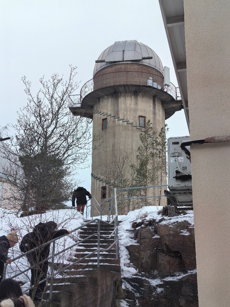 图尔库学习 在赫尔辛基的学习生活结束后,我们乘坐芬兰的列车来到图尔库,进行另一阶段的学习。 在图尔库的学习更多是在各类不同的场所参观进行,采用一种近似“游学”的方式。我们参观了图尔库大学Tuorla天文台,观看关于黑洞以及极光的科普视频。而后,参观了天文台(图3),以及各类天文设备。下午我们参观了图尔库西南植物园,采用温室大棚的技术呈现了全球各地不同的气候结构,保存了全球各地不同的植物类群,在短短一个小时的时间内,我们见到了从热带气候到高山气候的不同环境以及植物。除了参观植物园,也在Laszlo Major老师的引导下,体验了数学的魅力。