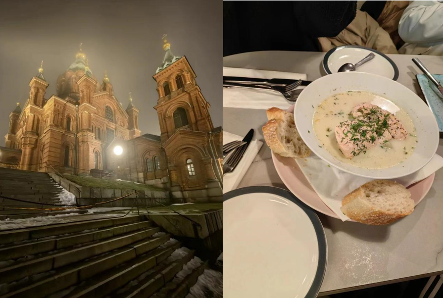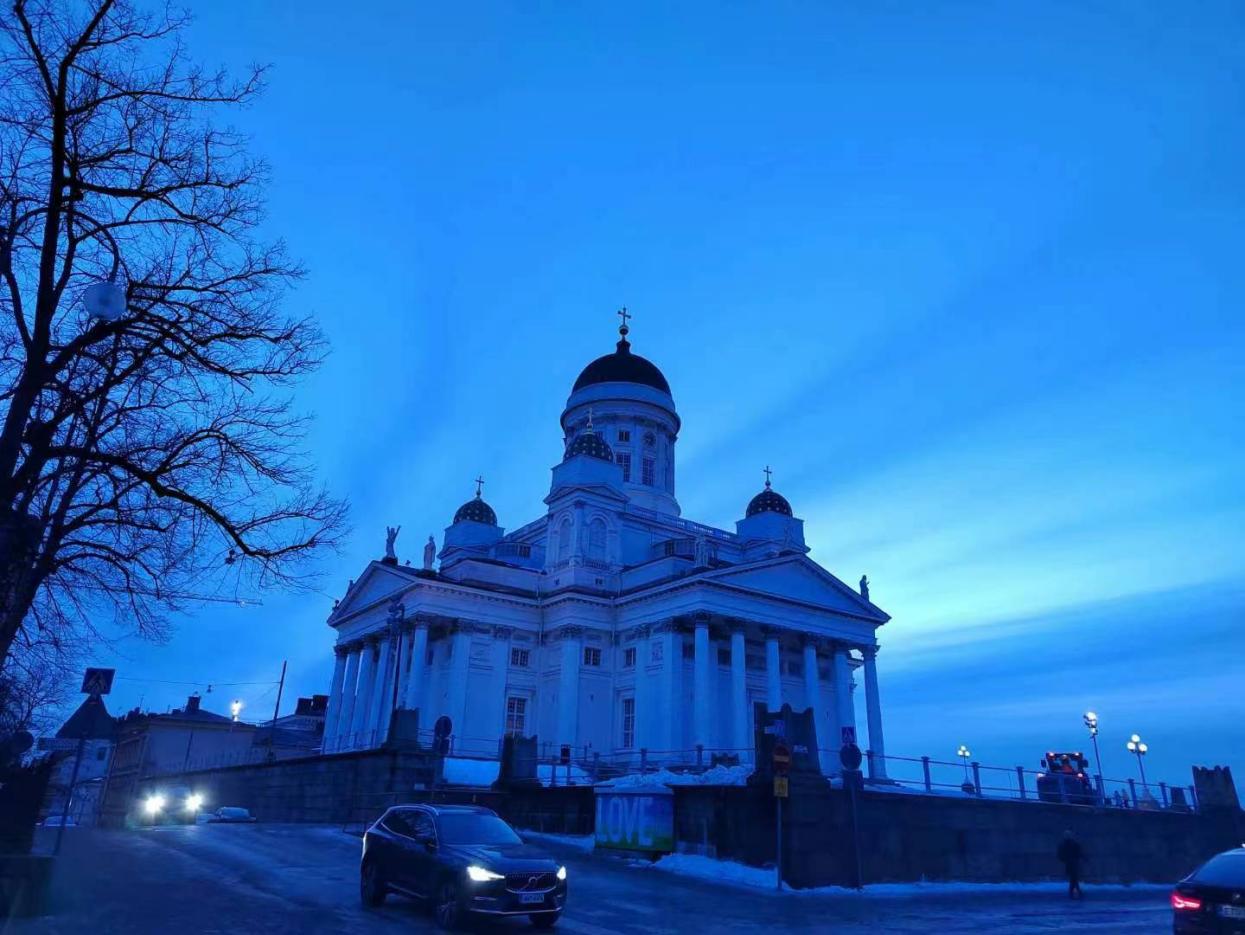 在学部的支持与两位带队老师的的带领下,2024.1.28日我们顺利抵达赫尔辛基。如果北京的夜景是一种用流光溢彩诠释了难以掩藏的繁华,北欧则是用冰雪、静谧与寥寥无几的灯光倾诉来自北极的童话,但童话并不热忱,热烈与纯真落不到实处,飘散在风雪中后,露出落寞、沉静与肃穆的内核。