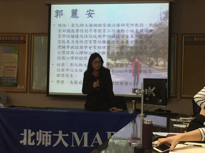 郭丽安老师为北师大心理学院2016MAP台湾实践行同学们讲《营建性别友善的职场》