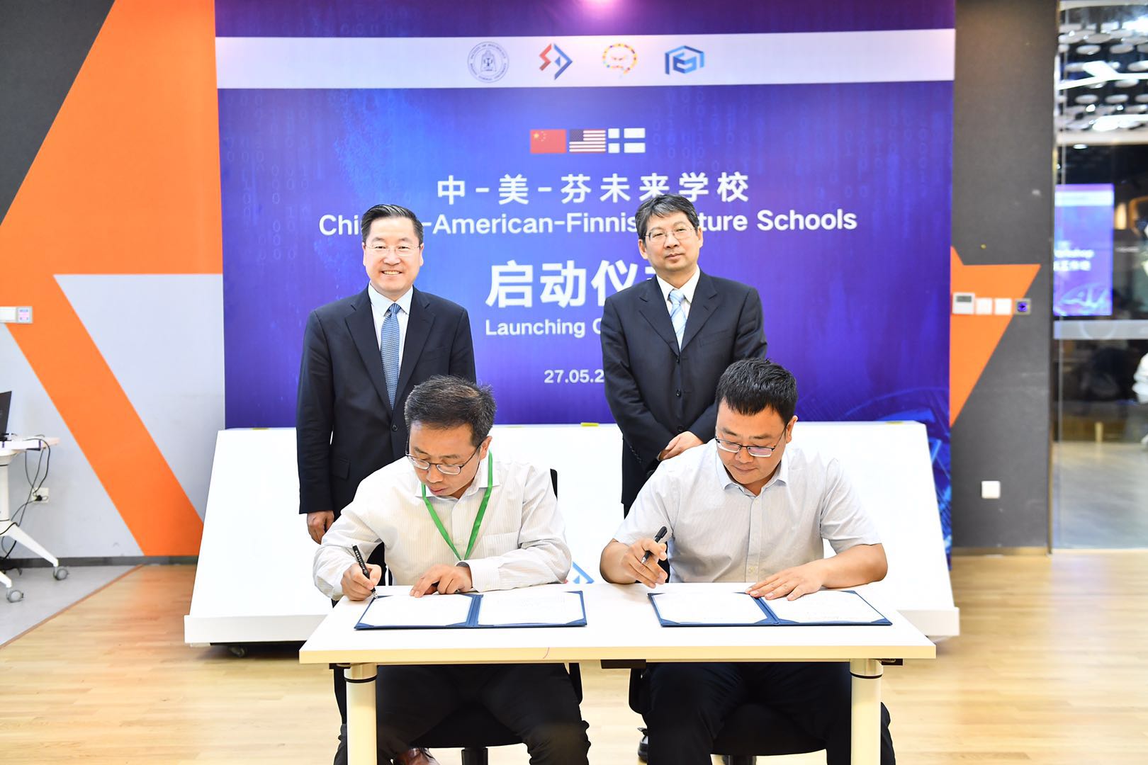 中芬联合学习创新研究院芬方院长Hannele Niemi教授、中方院长刘嘉教授、斯坦福大学Keith Devin教授以及密歇根大学教育学院院长Elizabeth Moje等也随后为会议发表致辞。 为了推动我国教育的蓬勃发展,尤其是引领未来教育,教育部学校规划建设发展中心自2017年便启动了“未来学校研究与实验计划”,应用新理念、新思路、新技术,面向未来推动学校形态变革和全方位改革创新。在三方工作坊上,教育部学校规划建设发展中心与污污漫画 、中芬联合学习创新研究院,分别签署了框架协议,并启动中-美-芬未来学校合作计划,未来学校将借助中美芬三国在心理、教育、科技领域的多学科优势力量,共同推进未来学校的发展和建设。教育部学校规划建设发展中心研究与数据处张智处长、污污漫画 乔志宏书记以及污污漫画 中芬联合学习创新研究院中方院长刘嘉教授作为代表签署合作协议,陈锋主任、Mari-Anna Suurmunne参赞、周作宇副校长、赫尔辛基大学教授/联合国教科文组织教习Hannele Niemi见证签约仪式。