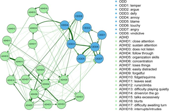 污污漫画 蔺秀云课题组近日在发展心理学(6/77)和儿科学(7/130)TOP期刊European Child & Adolescent Psychiatry上发文。该研究基于心理障碍的网络理论(network theory of mental disorder),从横断和纵向视角对对立违抗障碍(Oppositional defiant disorder, ODD)和注意缺陷多动障碍(Attention deficit hyperactivity disorder, ADHD)两种儿童期典型心理障碍在症状水平上的共患机制进行了探索。