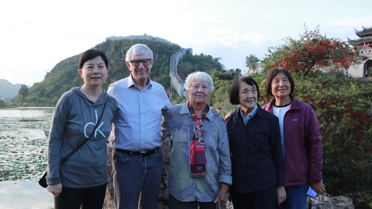 (2019年考察贵州织金县山村幼儿园,左二安德森教授、左三Mason教授、右二张厚粲教授)