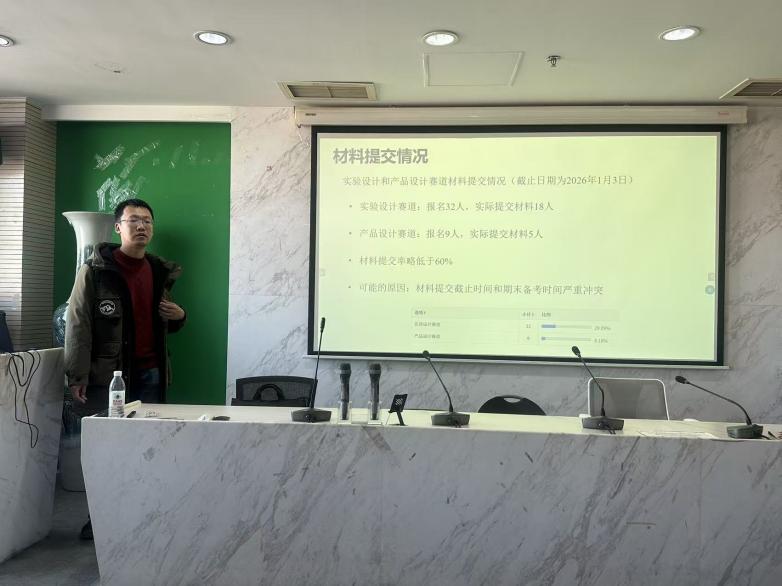 会议首先由胡啸老师汇报学部创新创业竞赛进展情况。学部于2025年11月启动的创新创业竞赛目前推进有序,后续将聚焦“实验设计”和“产品设计”两大赛道作品的评审组织与评奖设置开展工作。同时提醒其他方向参赛选手严格把控时间节点,确保作品按时高质量提交,切实以赛事为载体锤炼学生创新实践能力。