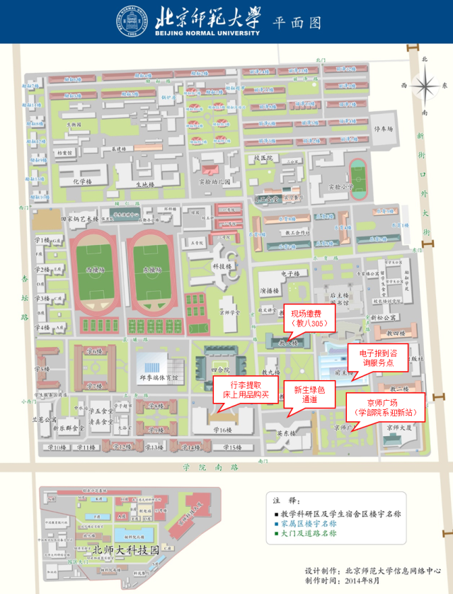 四、报到事宜 1. 报到时间 (1)本科、学术硕博报到安排: 9月3日(周六)7:00-14:00,请在规定时间报到,如7点前到校可先行去宿舍楼办理入住后再来迎新站。 如本科、学术硕博无法在以上指定时间完成报到注册(如14点后抵校,或因疫情滞留家乡等),可待9月5日起工作日前往相应办公地点办理(本科、心理硕博-后主楼1404、后主楼1430;国重硕博-英东楼422)。 已经在昌平入住的硕博连读新生,可先暂缓报道注册,待可返回本部后前往本部相应办公室办理。 (2)专业硕士报到安排: 9月2日9:00-14:00、9月3日10:00-14:00,在金丰和办理注册手续,具体以MAP中心通知为准。 2. 报到流程 (1) 入校 海淀校区从大东门、大西门、广场西南门入校,昌平校区从北门入校。全程要戴口罩,保持一米间隔排队入校。测体温、检查核酸检测报告、扫“入校码”,无异常者方可入校。入校后第一时间在木铎的西北侧、大西门、大东门做一次核酸。送学生的车辆和家长、亲友一律不得入校。 (2) 办理报到注册手续 本科生:京师广场“污污漫画 迎新站”报到领取材料 → 后主楼1318提交户档组织关系材料 → 宿舍楼办理入住手续 学术硕博(非国重):京师广场“污污漫画 迎新站”报到领取材料 → 后主楼1318提交户档组织关系材料 → 宿舍楼办理入住手续 学术硕博(国重):京师广场“污污漫画 迎新站”报到领取材料 → 英东楼办理提交户档组织关系材料 → 宿舍楼办理入住手续(具体以国重通知为准) 专硕:9月2日、3日在金丰和办理手续。 (下图为在昌平住宿学生办理入住流程,如7:00-14:00能在本部完成报到注册,可乘坐校车前往昌平校区;如14:00之前无法抵达本部办理报到注册,可直接自行前往昌平校园办理入住,先暂缓报道注册,待可返回本部后前往本部相应办公室办理。)