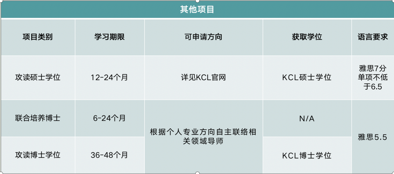 二、选派类别 本项目每年可选派教师(含博士后)和学生(硕博士攻读学位、硕博士联合培养、本科交流生)赴英国伦敦国王学院、曼彻斯特大学和卡迪夫大学访学或留学的名额有32人次。(详情见下图) 本项目暂不受理以下人员的申请:1.已获得国外全额奖学金资助。2.已获得国家公派留学资格且在有效期内。3.已申报其他国家公派出国留学项目尚未公布录取结果。