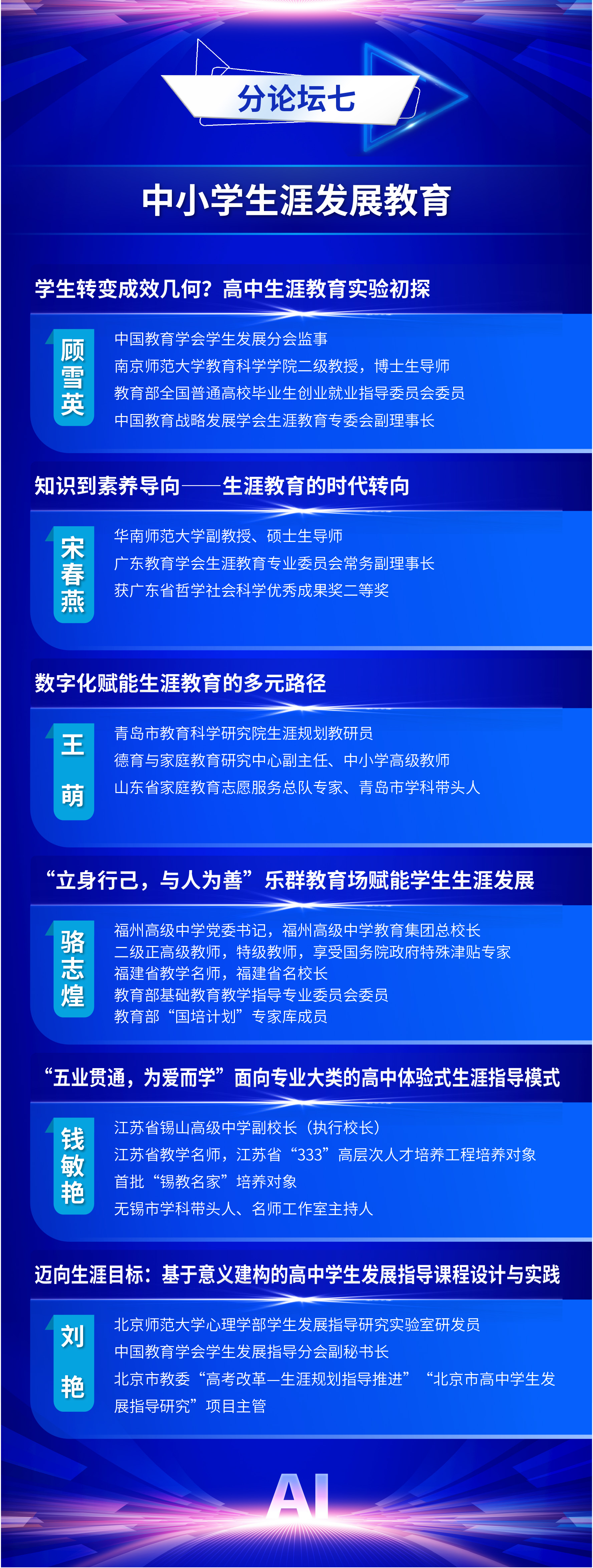 为全面贯彻党的二十届三中全会精神和全国教育大会精神,认真落实《教育强国建设规划纲要(2024-2035年)》,推动数智时代学生发展指导工作的创新与实践,中国教育学会学生发展指导分会定于2025年11月7日—11月8日在福建福耀科技大学(福州市)举办中国教育学会学生发展指导分会2025学术年会。现将有关事项通知如下: 一、会议主题 人工智能赋能学生发展指导 二、组织单位 主办单位:中国教育学会学生发展指导分会 污污漫画 承办单位:污污漫画 出版集团 支持单位:福州市教育局 福建福耀科技大学 福建师范大学心理学院 三、时间地点 会议时间:2025年11月7日—11月8日 会议地点:福耀科技大学国际学术交流中心(福州佩伯酒店) 四、会议日程 11月6日全天 报到 11月7日上午 开幕式,主旨报告 11月7日下午 校长论坛:迈向数智时代的教育新生态 分论坛一:拔尖创新人才培养 分论坛二:中小学心理健康教育 分论坛三:人工智能背景下的劳动与实践育人 分论坛四:校家社医协同育人 平行分会场论文报告 11月8日上午 分论坛五:学生发展指导中的AI应用 分论坛六:AI背景下“以学为中心”教学方式改革 分论坛七:中小学生涯发展教育 年度专题论坛:拒学厌学学生干预研究与实务 平行分会场论文报告 11月8日下午 主旨报告,闭幕式 五、出席嘉宾