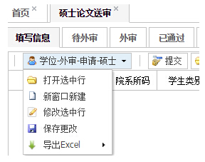 各位同学好: 现将2016年春季学期学位工作安排通知如下,请拟申请参加2016年5月份答辩的同学仔细查阅一下通知,根据通知要求按时完成相应工作: 1、学位信息采集 ①申请条件:已完成本专业学位培养方案规定的课程学习和实践任务,考核合格,完成学位论文,经指导教师同意,可申请学位。 ②学位信息采集:3月31日以前,登陆北师大研究生院网站→“学籍管理与常用链接”→“研究生院管理系统”→ “研究生学位系统”→“研究生学位”→“提交学位申请”。学位信息是学位备案的必要内容,必须完整填写、保存并提交(注:学位系统用户名为学号、初始密码为连续8位出生日期,若不能登陆,请电话咨询吴老师:58807820)。 备注:如在3月31日前未在网上提交学位信息的,则视为放弃本次答辩。 2、领取学位论文材料 申请人于4月初前往后主楼1428办公室领取学位论文封皮、学位审批材料 封皮、毕业生登记表,具体领取时间另行通知。其余学位环节所需表格可在研究生学位系统中下载打印,具体下载打印与提交时间另行通。 论文封皮申请人自行留用,毕业生登记表、学位审批材料封皮请填好后,于5月10日前提交至MAP教育中心。 3、论文抽查 申请人于4月5日前将纸质版论文1本(按照学位论文要求打印,并加装封皮)提交至MAP教育中心。MAP评审组将于4月5-10日组织抽检论文,抽检意见将于4月15日左右反馈申请人。 4、论文检测 申请人于4月20日前将论文全文电子版(命名:zs_姓名_学号)发送到[email protected],按学校要求进行论文检测。过期未提交者视为放弃。 申请人提交的论文命名格式务必为zs_姓名_学号,否则将不予检测,每人仅限检测一次,检测通过者方可进入下一环节。 备注:关于论文检测我院将严格执行研究生院 师研学位【2015】第04号 关于做好研究生学位论文检测工作的通知。 5、论文评审 申请人将论文送审审批表【学位系统我的申请与下载自行下载】、检测报告(简洁版)【检测通过后由学院发邮件告知】及论文送交导师审阅,经导师审定并在《论文送审审批表》中签署同意送审意见后,由学院组织送审。导师签署同意方可送审,否则无法进行论文评审。 请于4月25日前将导师签字同意的论文送审审批表,检测报告(简洁版)一式一份交至后主楼1428办公室或MAP教育中心信箱。 导师同意送审后请于4月25日前登录研究生学位系统,提交电子版论文以备送审。 注意事项: (1)请将电子版论文转换成PDF格式;(送审论文应与检测论文保持一致) (2)登录系统后点击硕士论文送审一栏,点击方式一,选择新窗口新建,操作如图所示: