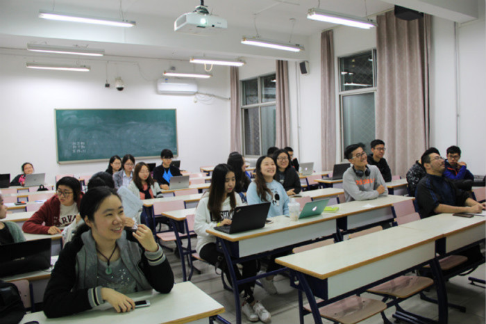 之后,本学期新加入班级的两位交流生向同学们做了自我介绍,并讲述了初到北京对学校的第一印象和自己对新学期的期盼,同学们向她们表示了热烈的欢迎。最后,进行了班级合照。 进行班级合照