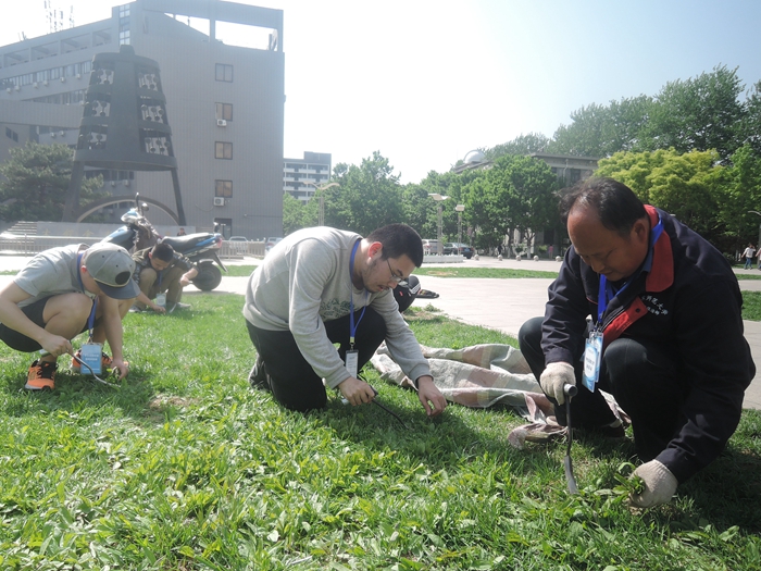 2018年4月27日14:00,由本科2015级第一、第三团支部、学校后勤物业部门合办的五一劳动节物业劳动体验活动在京师广场顺利举办。 活动开始,来自物业的胡老师为同学公布了本次活动的劳动任务:拔草。 紧接着,胡老师为同学们分发了劳动工具,并亲自向同学们示范如何进行拔草工作,还为同学讲解了拔草工作的作用和要领。据胡老师介绍,每年的这个时节,物业部门都要组织人员在京师广场这样的草坪进行拔草工作,拔草工作很辛苦,需要大量人力劳动才能完成;而今年不同的是,除完草的草地将使用新的除草剂,它比以前更加有效但需要在洒药前把杂草连根拔出。同学们仔细的听完老师的讲解后,便开始了各自的劳动工作。 在两个多小时的工作后,同学们完成了对老师指定草坪的拔草工作,并合影留念。 通过此次活动,同学们体验了学校后勤物业部门的部分工作,学习了绿植工作的相关知识,对学校物业工作有了更深的了解。