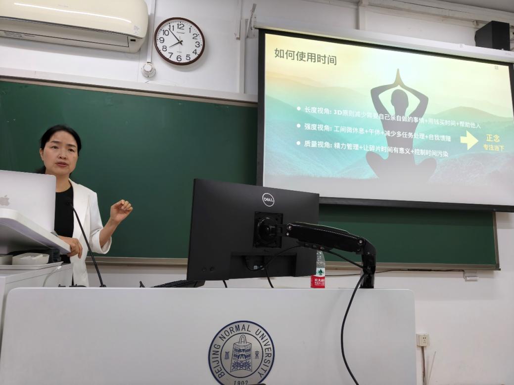在讲座的最后,孙老师提出了一些应对时间贫困和提升生命意义感的建议。她强调,人们应该提高对时间使用的意识,合理安排时间,关注内在目标,并从更高的解释水平看待自己的行为。