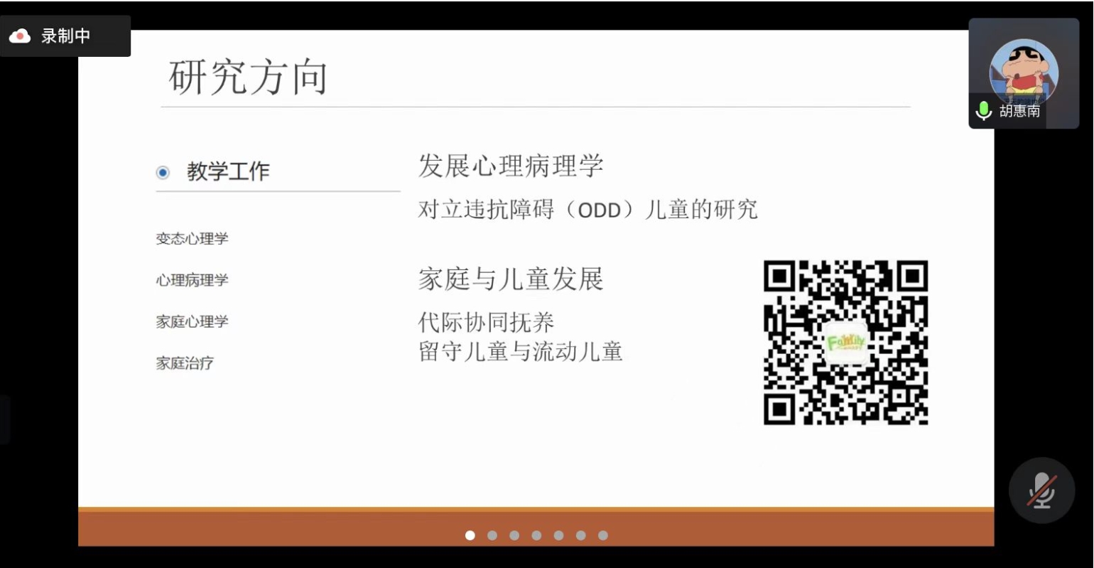 范芝钰同学讲述了自己的学习经历以及自己所在老年心理学导师组的具体研究内容,表达了自己研究老年心理学的一些感悟。