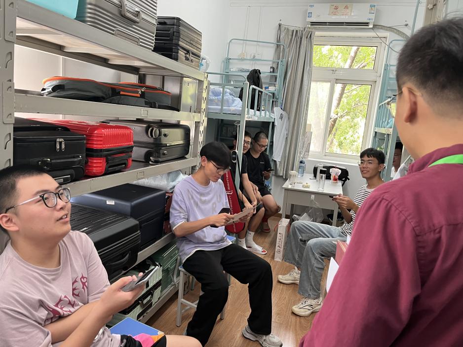 图11 新生班主任田雪涛走访男生宿舍与新生交流 在学部师生的共同努力下,学部迎新工作整体圆满完成!新生们迈出了在师大校园学习生活的第一步!预祝“心”同学们学业有成,生活愉快,未来可期!