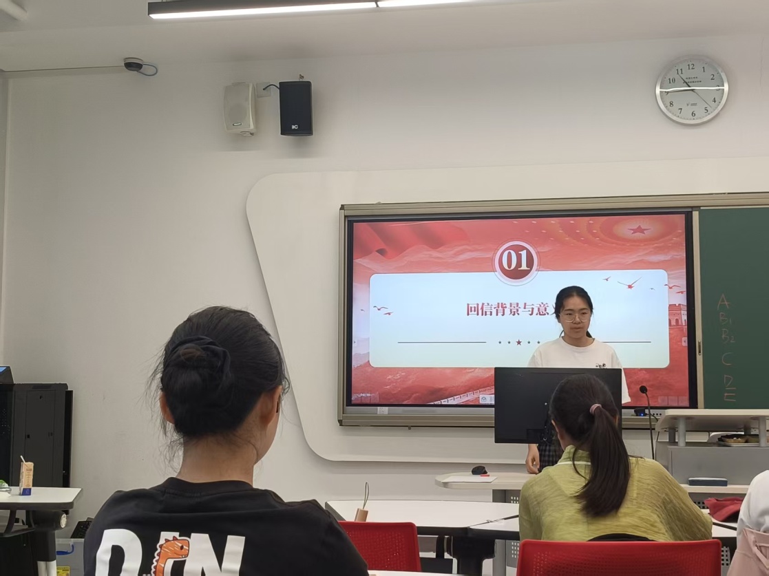 5月20日,2024级励耘班团支部举办习近平总书记重要回信精神专题学习活动,团支书刘爽同学围绕回信背景、精神内涵及实践要求展开深入解读,支部成员积极参与,反响热烈。
