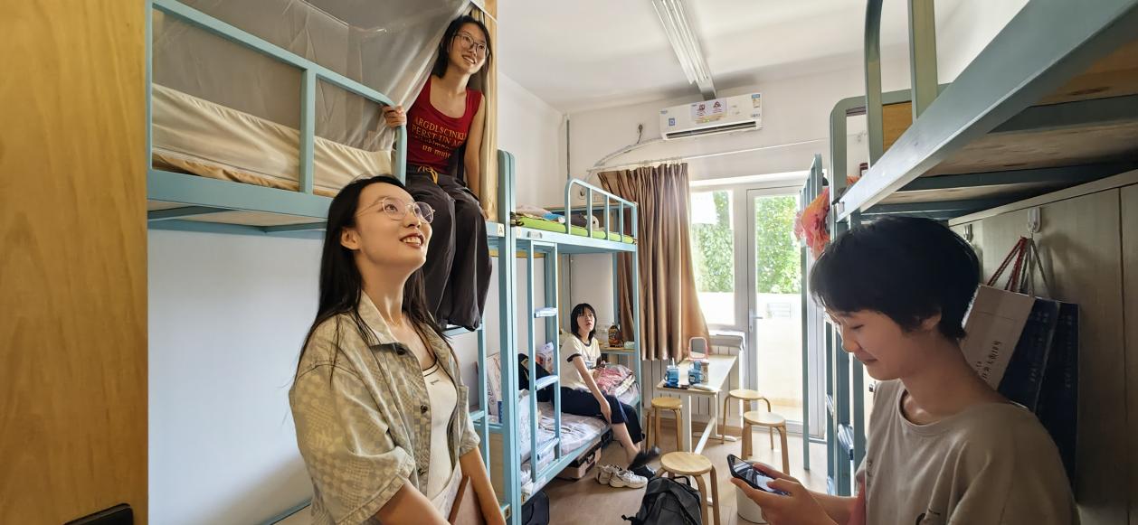 图12 新生班主任田雪涛老师走访新生宿舍 与此同时,在风光旖旎的南海之滨,学部珠海校区专业硕士、学术硕博的迎新工作也如火如荼地展开。学部工作人员和新生班主任的热情欢迎,为他们崭新的求学之旅写下了温暖的第一笔。