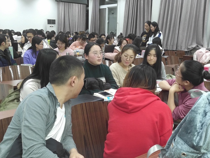 首先,研讨会成员根据已经分好的小组进行小组交流,每名同学在组内轮流就所选话题进行发言。