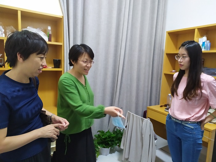 到达昌平校园后,王瑞敏老师、邢爱玲老师和刘佳辉老师走访了男生宿舍和女生宿舍,在与同学们的交谈中,老师们从入学适应、学业发展、科研进展到班车通勤、宿舍布置、生活安全等多方面了解学生们的近况,深切地表达了对同学们的关心和问候,同时鼓励大家多组织班级团建活动,积极建立情感联结。