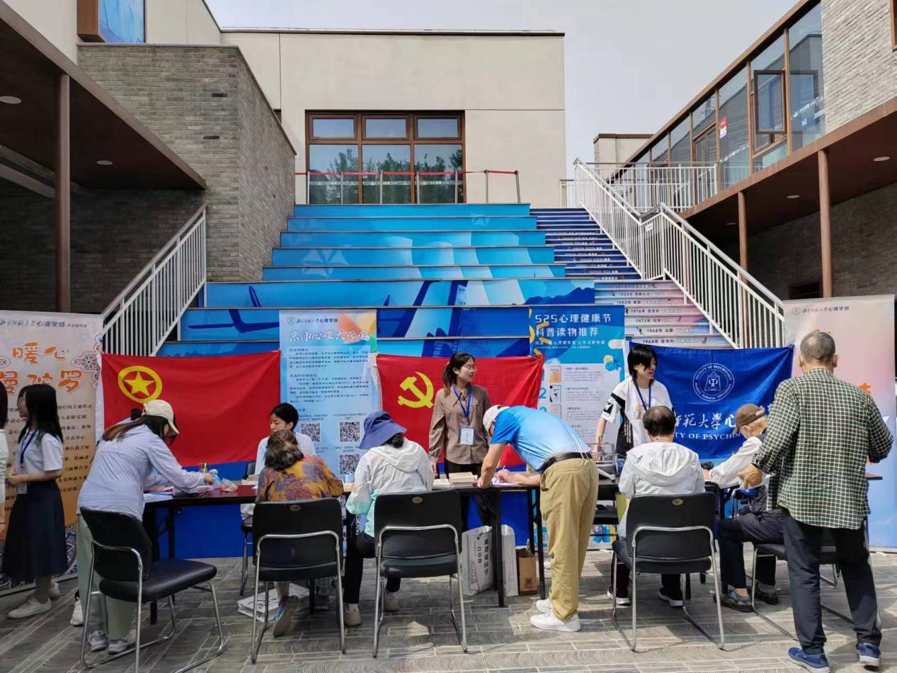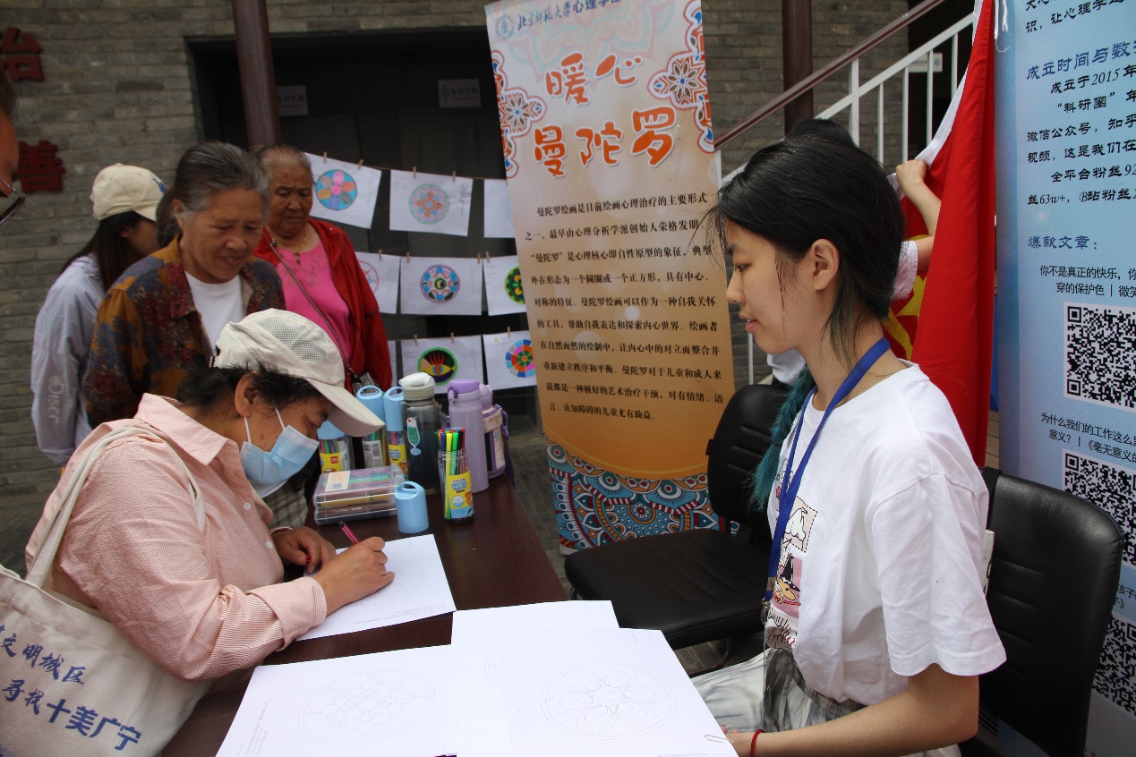 聆听讲座后,参与者们来到露天广场的志愿服务项目展示区参与活动。室外展示区设置了心理咨询体验、曼陀罗绘画、心理书籍阅读、京师心理大学堂科普推广、心理仪器与视错觉现象展示共6项体验内容,大家在展位前驻足了解,根据个人需求进行咨询体验,通过曼陀罗绘画体验自我表达和内心探索,翻阅心理书籍,阅读科普文章,操作体验心理实验仪器,了解经典的视错觉现象。