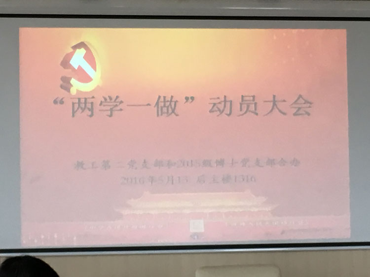2016年5月13日,心理学院教工第二党支部、2015级博士党支部于后主楼1316会议室联合召开“两学一做”动员大会。两支部共14名党员出席了会议,教工二支部书记刘霞和2015级博士党支部书记谢瑞波共同主持了会议。