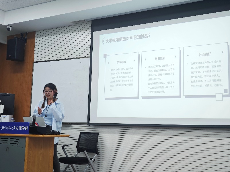 在王小华老师精彩的讲解之后,班长董霖同学为同学们开展安全教育和AI技术学习主题班会。在安全主题班会上,班长为大家强调交通安全、用电安全、防火安全等方面的重要性,教育引导同学们注意人身安全。在接下来的AI技术学习主题班会中,班长带领大家学习了AI知识,并选取了大学生群体中典型的AI使用案例组织大家展开讨论。在热烈的讨论中,同学们增强了AI的使用素养。