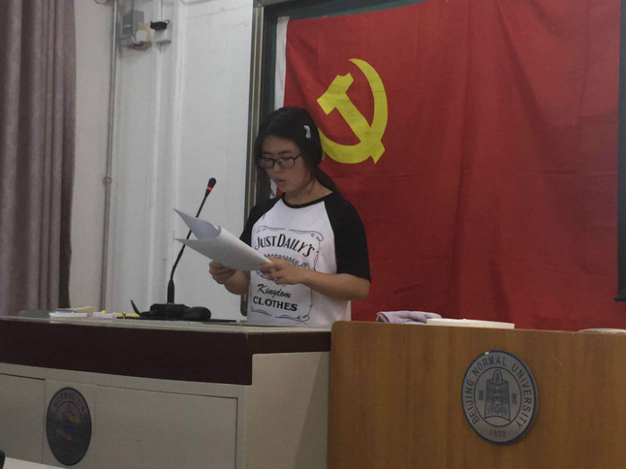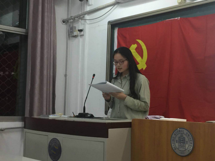 5月9号晚,本学期第一次、第二次污污漫画 本科生党支部党员发展大会于教二105在庄严的《国际歌》合唱声中拉开序幕。两次会议由支部书记陈子卓主持,分别针对发展对象史博文、武晓红和刘畅同志,以及刘亭序、李一行和周婧怡三位同志的入党申请及相关情况进行了讨论和表决。大会共有9名正式党员参加,超过应到会正式党员人数的半数,没有到会的7名正式党员出具了书面意见。 第一次党员发展大会开始,主持人陈子卓同志对本次大会的流程及发展对象顺序进行介绍,随后三名发展对象逐一宣读入党志愿书。三名发展对象结合自身实际,陈述了自己的入党动机,表达了对中国共产党的向往,表示愿意服从党的领导,对党忠诚,积极工作,坚定不移跟党走,为共产主义事业奋斗终身。 随后,三位发展对象的入党介绍人分别宣读介绍人意见,其中武晓红同志的第一介绍人书面意见由支部书记陈子卓同志代为宣读,他们肯定了发展对象在培养考察期间的思想觉悟和突出表现,并且针对他们在生活学习中的不足之处提出了批评和建议。 第一介绍人的意见宣读完毕后,与会的同志就三位发展对象的优点和不足之处进行了民主评议。随后进行全体正式党员进行无记名投票。支部党员赞成接收史博文、武晓红和刘畅三位同志为中共预备党员。三名同志也表示将在实践中不断锻炼自己,更努力地为身边的同学服务,努力成为一名优秀的共产党员。
