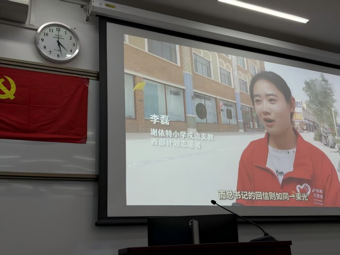 接着,孙梓耀同志带大家回顾了习近平总书记在其他场合对青年的殷切期望和重要指示,包括《习近平给谢依特小学戍边支教西部计划志愿者服务队队员的回信》《习近平同团中央新一届领导班子成员集体谈话》等。 在这些讲话中,习近平总书记充分肯定了青年在国家发展中的重要作用,明确新时代中国青年要树立远大理想、热爱伟大祖国、担当时代责任、砥砺奋斗、练就过硬本领、锤炼品德修为。总书记的讲话为青年成长成才指明了方向,激励着广大青年在实现中华民族伟大复兴的征程中贡献自己的力量。 孙梓耀同志强调大家要将这以上精神贯彻落实到日常学习工作中,深刻领悟 “两个确立” 的决定性意义,增强 “四个意识”、坚定 “四个自信”、做到 “两个维护”,以实际行动践行青年的使命担当。