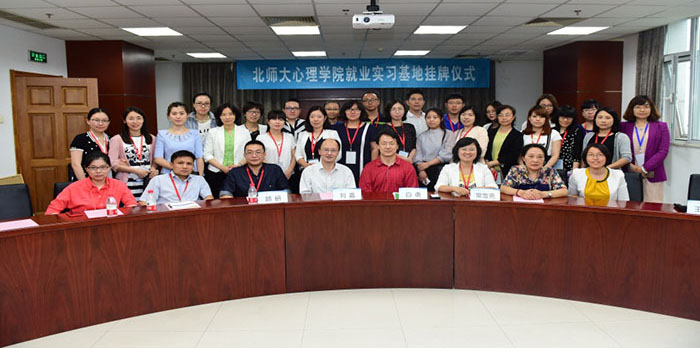 2016年6月14日下午,北师大心理学院就业实习基地挂牌仪式暨就业实习双选会在后主楼1420和1318顺利举行。北师大学生就业与创业指导中心主任白勇、心理学院院长刘嘉、脑与认知科学研究院党总支副书记林春梅和心理学院分党委副书记王瑞敏等领导老师以及来自14家企业的30多位校外嘉宾出席了挂牌仪式。会议由心理学院分党委副书记王瑞敏主持。
