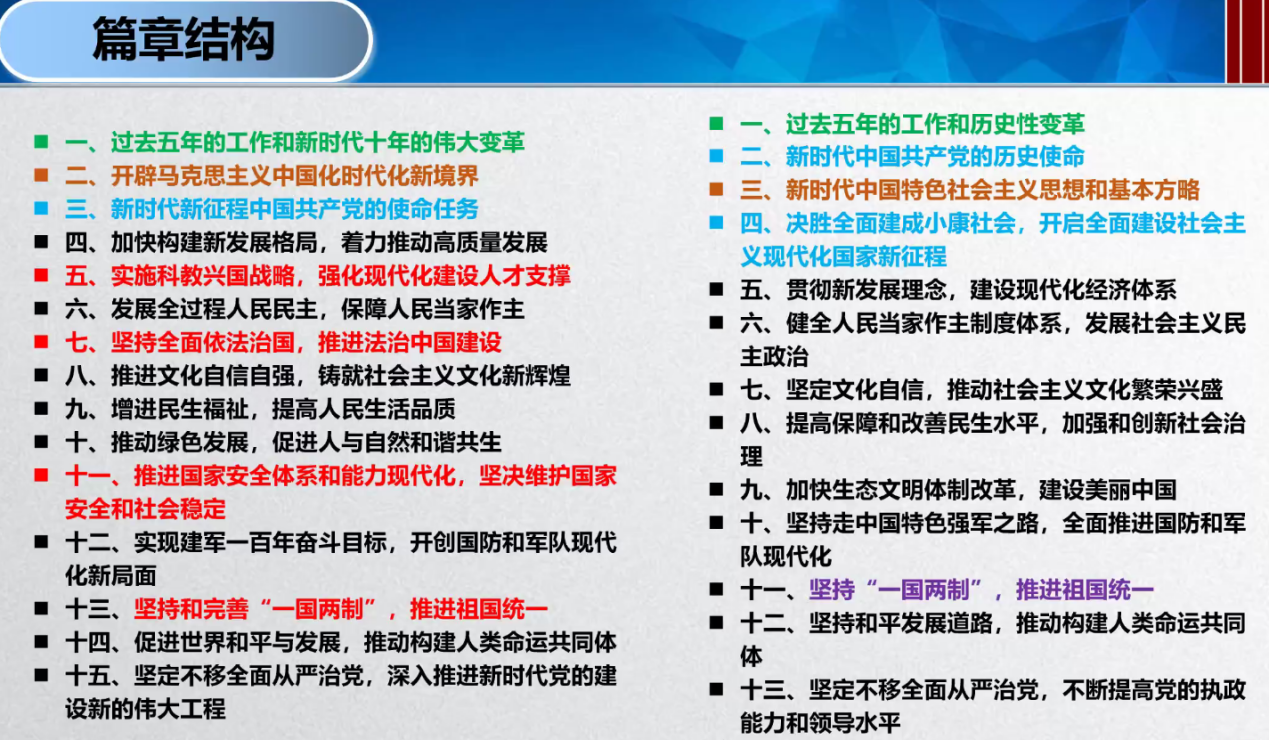 党的二十大落幕不久,关于党的二十大报告的讨论与学习正热烈进行。讲座上,刘老师以党的二十大报告内容为主线,首先通过与之前会议的纵向对比,带领同志们共同学习了党的二十大的主题,强调了此次会议主题在内涵上的丰富及意义上的递进。紧接着,刘老师细致地梳理了此次会议报告的篇章结构,对报告中表述的更新进行了解读,并从新时代历史性成就、历史性变革的新定位、开辟马克思主义中国化时代新境界、新时代新征程中国共产党的新使命、全面建设社会主义现代化国家的新部署四个方面对报告内容进行了进一步的讲解。刘老师的讲解深入浅出,不仅从面上进行概括,更针对具体事件进行分析,以此来帮助同志们切实理解党的二十大报告的内容。