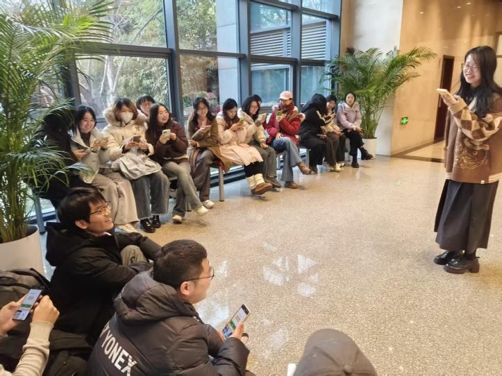 理论学习后,团支书吴玮婧组织了党团知识趣味抢答。题目围绕党的基本理论、团史团章、党团关系及本次参观主题精心设计,现场气氛活跃,团员们积极参与、踊跃作答,在轻松愉快的互动中巩固了知识、提升了认识。这一环节以“乐学”促“深学”,即增强了理论教育的吸引力,也进一步凝聚了支部向心力。