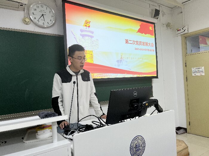 本科生第二党支部在教二111顺利召开2023 - 2024学年秋季学期第二次党员发展大会及第三次预备党员转正大会。会议由程先楷同志主持,共13位党员、预备党员参与。本次会议的主要内容为讨论孙梓耀、沙瑞欣两位同志的发展事宜以及张宇衡、郭嘉欣两位同志的转正申请。 会议开始,党支部全体成员起立,合唱《国际歌》。之后,党支部书记程先楷同志对此次党员发展大会的流程以及两位拟发展同志进行介绍。