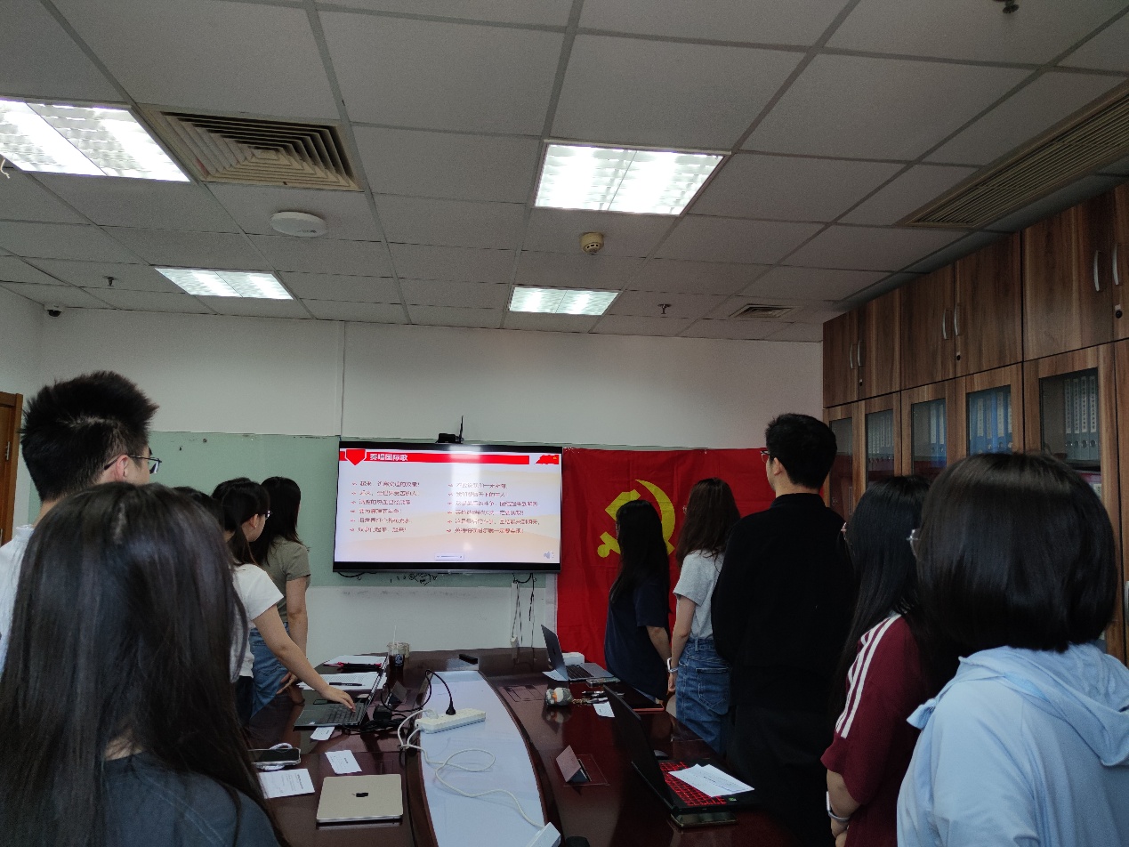 随后,党支部书记宣读支部大会决议,石佳霖同志顺利转为正式党员。石佳霖同志发表转正感言,感谢党组织和同志们的认可与支持,未来将在学业、工作等方面更加严格要求自己,不断提升各方面的综合素质。 最后,在孟玉洁同志的带领下,全体成员重温入党誓词。