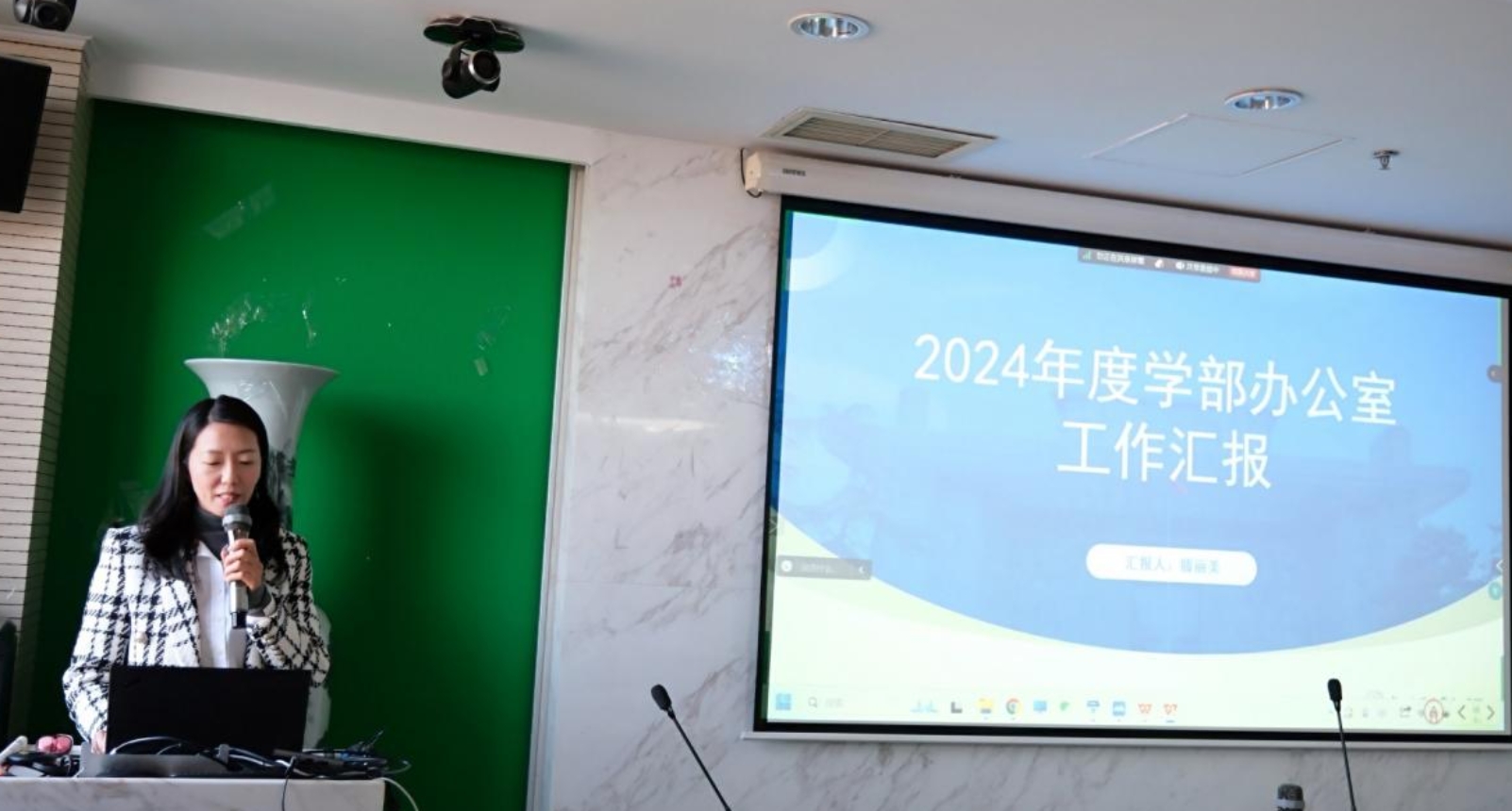 财务办公室汪蕾老师对2024年财务工作进行了全面总结,着重阐述了服务工作的成效,并制定了2025年服务质量提升计划,力求在保障学部财务健康运转的同时,进一步提升服务满意度,为学部发展筑牢财务根基。