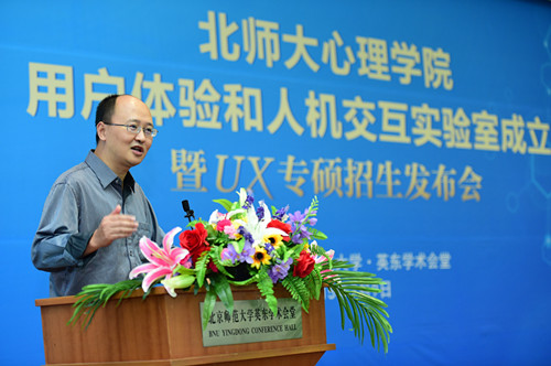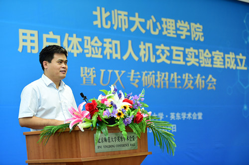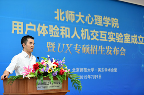 依托北师大心理学院应用实验心理和北京市重点实验室的技术力量与学术积累,此次发布会同时成立北师大心理学院用户体验与人机交互实验室,这也将成为密切校企合作的重要平台,未来将完成科学研究,人才培养和对外服务的三大使命,也欢迎更多的优秀企业家参与实验室的建设,共享与利用。 图六 微软大中华地区副总裁杨晨先生出席污污漫画 心理学院用户体验和人机交互实验室成立暨UX专硕招生发布会并致辞-BNU MAP