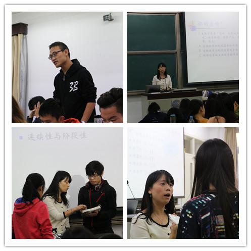2015年国庆长假后的第一个工作日10月8日早8点,近200个座位的教四101教室座无虚席,由心理学院彭华茂副教授执教,面向2014级本科生的《发展心理学》教学观摩正在这里开展。我院多位教师观摩了本次教学。 彭华茂老师在本次课程中围绕人类发展的基本理论,从人类发展的基本问题和争论入手,全面生动地向学生们阐述了精神分析理论、学习理论、认知发展理论等基本的人类发展理论。课堂上,彭老师从“生物因素和环境因素对人的发展哪个影响作用更大”这一发展心理学的经典问题导入,在同学们的个人观点得到充分的表达阐释后,导入本次授课的主要内容——人类发展的基本理论的讲授,并将课堂氛围推向热烈。彭老师在课堂中采用问题讨论、日常生活事件解析、经典心理学研究等方式将人类发展的几种理论向同学们进行了生动的解析。课堂上不时传出同学们的笑声和掌声,教学在温润的氛围中悄然进行。 课后参加观摩的教师对此次教学进行了全面深入的研讨,对《发展心理学》的授课方式及风格提出了极大的肯定,并在研讨中形成了相应的改进意见和建议。彭华茂老师为我校京师英才奖及励耘奖学金获得者,同时也是我校最受本科生欢迎的教师,一直致力于本科课堂教学改革的开展。她主持了《认知心理学》课程的“大班授课、小班研讨”的教学改革,创新性地采用大班授课与小班研讨相结合的方式开展专业课程的教学,所教授的课程深受学生喜欢。此次教学观摩课上,彭老师的教学设计内涵丰富,教学方法灵活多样,教学内容重点突出,给广大青年教师树立了良好的典范。 作为我校“本科教学观摩月”的第一场活动,本次教学观摩活动为我院教师,尤其是青年教师提供了良好的同伴观摩和学习平台,必将有效地提升我院的本科课堂教学质量。 课上掠影 |