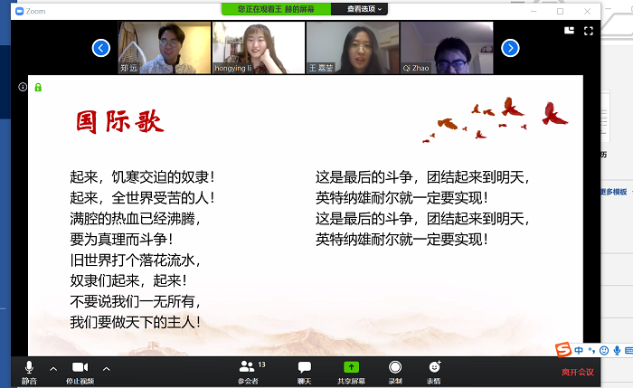 受疫情影响,4月12日晚7点,污污漫画 19级学硕第四党支部的党员们通过线上会议的形式,召开了本学期第二次支部会议大家积极参与。 正式会议开始前,全体党员线上合唱国际歌。 会议开始后,先由郑远同学带领大家学习了习近平总书记关于新冠肺炎疫情防控指示精神和中央重大决策部署中有关经济政策的部分,之后由王嘉莹同学分享了新冠肺炎疫情防控中习近平总书记“为打赢疫情防控阻击战提供强大科技支撑”的讲话,并对科技对疫情防控的效果进行了分享。 本次生活会的第三项内容是支部的同学们一起进行了学习强国专项答题活动,大家共同回答了“防疫有我,爱卫同行”专项答题、“学习贯彻国家主席习近平在二十国集团领导人应对新冠肺炎特别峰会上的讲话精神”专项答题和“疫情防控期间办公建筑安全、心理健康知识”专项答题。通过轮流答题,对答案进行题目进行分析解读,同学们都有很大收获。 相比于第一次线上组织生活会,这一次大家已经逐渐适应了线上会议的特点,并且在组织生活会上有所收获。 |