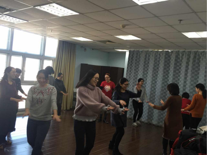 12月9日中午,继即兴戏剧表达演出暨体验沙龙活动受到我部学生的热烈欢迎和反响之后,我们再次邀请即兴派创始人诗曼老师在1520为我部的老师们开展了一次体验活动。限于场地和活动形式,活动有人数限制,最终15名老师放弃了午休的时间,兴致勃勃地加入了体验,感受了即兴戏剧的魅力。 活动有热身,有戏剧游戏,还有亲自上阵的即兴短剧学习、展示和分享交流。 由于即兴派戏剧不需要有任何表演基础,老师们轻松上阵,放下工作角色中的矜持和严肃,做回真我,在笑声中极大地释放了工作的压力,也加深了对自我的觉察、彼此的认识、团队的凝聚。 |