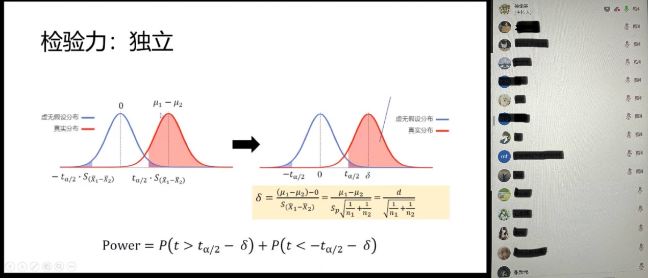 第二次心统辅导课由于天气原因改在了线上进行,虽然遗憾大家无法线下见面,但徐傲寒学长的精心准备和同学们的积极参与依然使这成为了一次很成功的活动。学长主要讲解了独立样本t检验和相关样本t检验的内容。这两部分可以说是本学期的心统学习中最复杂难懂的部分,他用图文并茂的形式生动细致地进行了解读,很大程度上解决了同学们的难题。