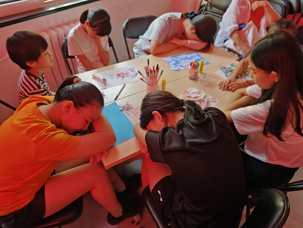 随着情绪拼图活动接近尾声,大家都纷纷和自己的作品一起合影,随之而来的是由陈嘉祺同学主持的“此刻安心”正念冥想体验活动。陈嘉祺同学首先介绍了正念冥想的具体定义和主要的用途,在座的孩子们都感到十分新奇,专注聆听。