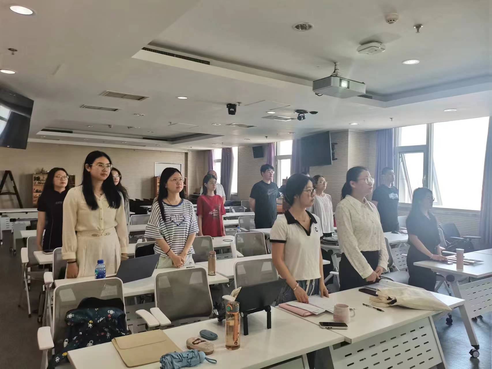 研究生第五党支部于2024年5月30日9:30在后主楼1318召开预备党员转正大会,会议由党支部书记赵恒同志主持,支部内13位正式党员参加了会议,支部指导老师曹昌健莅临指导。 本次会议的主要内容为讨论林静敏和董译铂同志的转正申请。 首先,全体起立,奏唱《国际歌》。