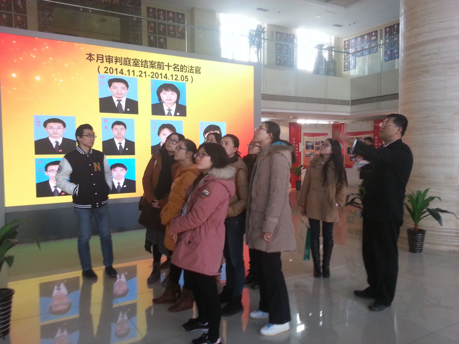 2014年12月12日下午,在党务秘书张丽霞老师的带领下,我院本科生第二党支部、临床与心理咨询研究所党支部以及人格与社会心理研究所硕士党支部11名学生党员和积极分子前往丰台区人民法院,开展了“今日看‘法’”庭审观摩活动。 图1 主审法官与学生合影 活动当天,观摩队伍在丰台区人民法院未成年人案件审判庭庭长刘庭的引导下,首先参观了法院主楼的展览区,了解了丰台法院的法官队伍和我国的法官分级构成,以及该法院的结案率和案件审理总体情况;然后进入了庭审的审判庭,刘庭长介绍了本次观摩庭审案件的基本情况以及未成年人审批庭处理处理未成年人案件的具体流程。 图2 丰台区人民法院未成年庭刘庭长介绍法院情况 在审判过程中,观摩队伍作为旁听席认真听取了案件审理的全过程,并在庭审结束后积极与王芳审判长对话,详细讨论了对于案件审理和我国法律法规的一些疑问,同时从专业角度出发探讨了心理干预与心理诊断在未成年人审批案件中所起到的作用。在座谈过程中,王芳审判长高度赞扬了观摩队伍的专业素质,也认可心理学在社会应用尤其是案件审理中的重要作用,同时也表示丰台法院非常重视心理疏导和心理诊断的应用以及对于这方面人才和资源的迫切需求,希望有更多像师大心理学子这样的高素质人才加入到我国的司法队伍中来。 图3 同学们在观摩法庭 本次活动是为纪念 “12·4”全国法制宣传日暨国家首个宪法日的到来,引导广大学生深入学习贯彻十八届四中全会的法治精神,进一步树立公正、法治的观念,同时引导心理学子探索心理学在法治社会建设中可以有怎样的应用,激励青年学子自觉地将个人的成长成才与社会的发展进步结合起来,为实现民族复兴的中国梦而汇聚中国精神、凝聚青年力量。