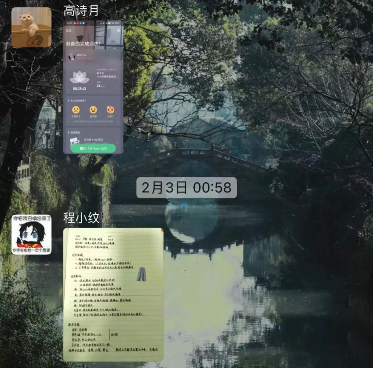 二、 学习兔 综合班寒假“学习兔”14天学习打卡活动现已圆满结束! 本次活动共包括五类不同的打卡积分项目,在这14天里,共有12位同学参与了打卡活动,其中4位同学连续打卡14天,获得了full combo额外积分奖励~ 感谢大家的坚持和努力,活动中群里的同学们也经常彼此监督,彼此鼓励,分享共同的经验和爱好,发挥聪明才智,广泛涉猎,勤练技能,丰富知识,收获一起学习的快乐。一分耕耘,一分收获,相信大家都会以积极的状态迎接新学期的学习生活,也希望新学期里我们也会共同进步~ 精彩时刻