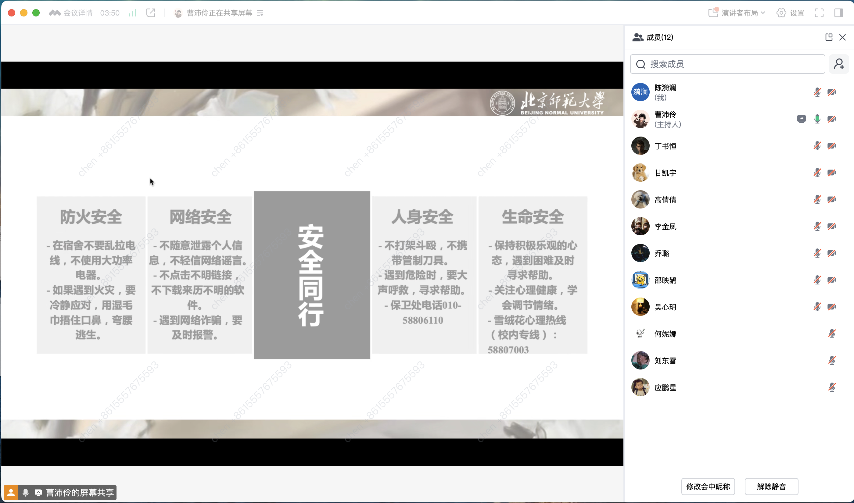 班会的第一部分聚焦于安全教育,内容涵盖网络安全、校园安全以及个人生命安全。通过多个真实案例,提醒同学们要提高警惕,防范网络诈骗;在校园安全部分,强调了校园安全的重要性,遇到危险大声求助,并及时拨打保卫处电话;在个人生命安全部分,鼓励同学们在遇到心理困扰时积极寻求帮助,并介绍了学校提供的大量心理支持服务。