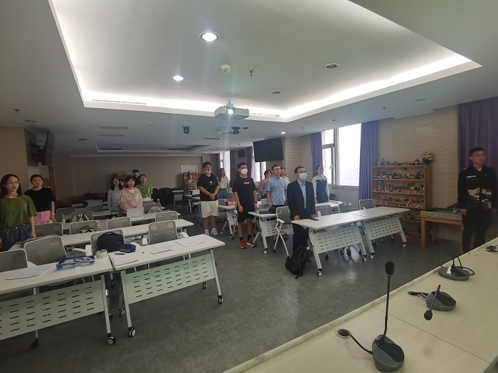 会议第一项,全体参会人员面向党旗站立,奏唱《国际歌》。第二,支部书记程先楷对莅临指导的罗部长和共建交流的研究生党支部同志表示欢迎。第三,程先楷同志介绍本次大会流程及拟发展的积极分子。第四,积极分子陈晓曦宣读入党志愿书,阐述自己的入党动机、为人民服务的情况,表明自己入党的志愿和决心。第五,介绍人宣读意见,支委会宣读政审报告后,其他同志分别该同志进行评议,参会正式党员表决。第五,支部书记宣读《党支部会议决议》,同意发展陈晓曦同志为预备党员。最后,新预备党员陈晓曦同志发表入党感言,感谢党组织的培养,未来将坚持学习,努力提升自己,成为一名更加合格的共产党员,继续在党的带领下为社会做贡献。