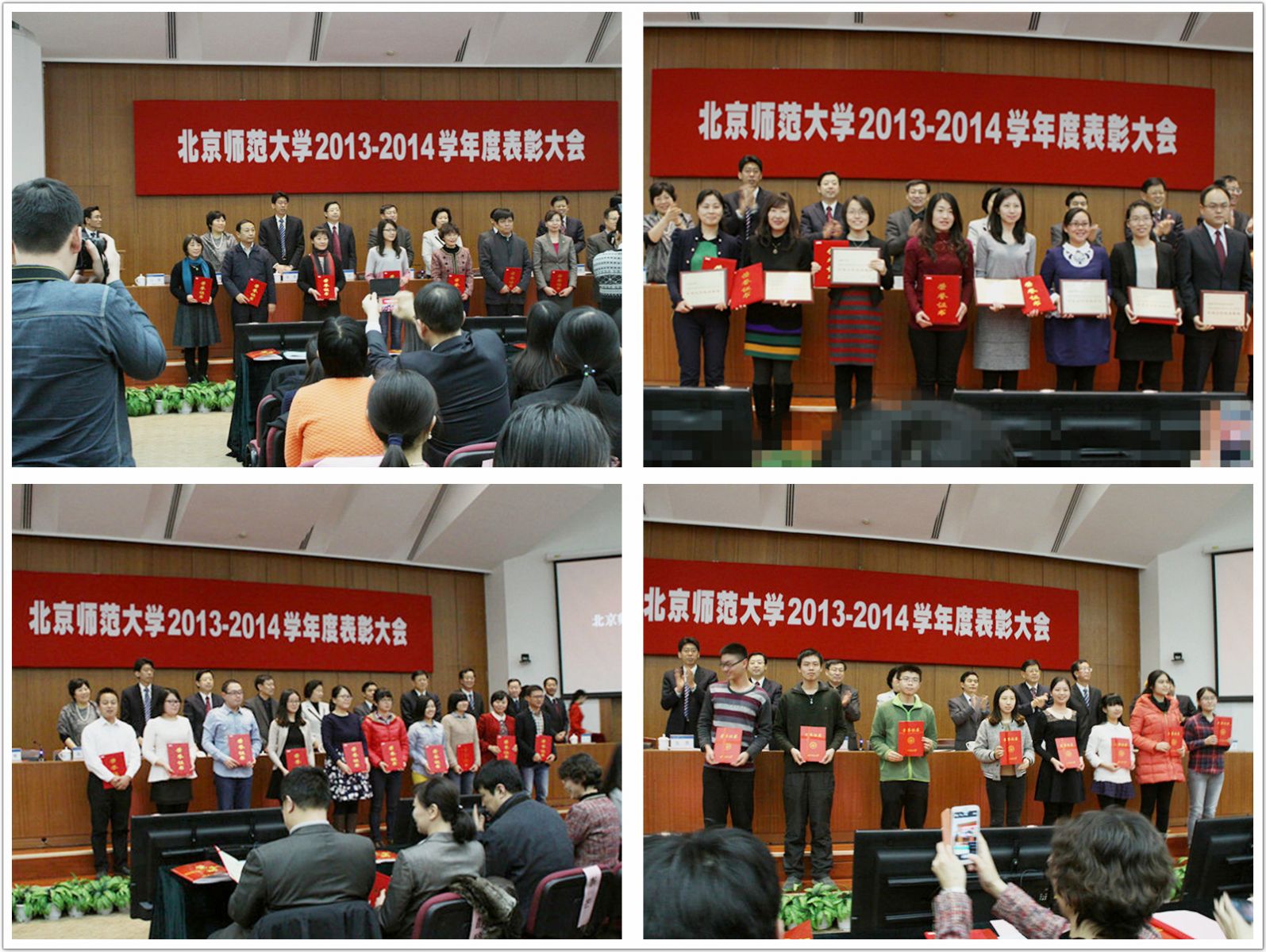 12月30日下午,学校2013—2014学年度表彰大会在英东学术会堂隆重召开。党委书记刘川生、校长董奇等校领导出席大会。我院姚梅林教授作为“十佳师德标兵”、分党委副书记王瑞敏老师作为“学生工作先进个人”、2012级班主任曹昌健老师作为污污漫画 “十佳辅导员”、2011级本科生苗芃作为国家奖学金获奖代表分别上台领奖。 以下为获得学校表彰的先进集体及个人。 一、教师先进集体及个人 姚梅林老师获评“十佳师德标兵”荣誉称号; 彭华茂老师获评“励耘奖学基金(优秀教师)二等奖”; 胡清芬老师获评“通鼎青年教师奖(本科教学奖)”; 心理学院在院系学生工作考评中被评为“学生工作先进集体”; 分党委副书记王瑞敏被评为“学生工作先进个人”; 分团委书记曹昌健老师获评首都“先锋杯”优秀基层团干部; 2012级本科生班主任曹昌健老师获评污污漫画 “十佳辅导员”、“优秀辅导员”; 2011级本科生班主任解妍获评“优秀辅导员”。 二、学生先进集体及个人 心理学院2012级师范班获评北京市先进班集体、北师大一等优秀班集体; 心理学院2012级非师范2班获评北师大一等优秀团支部; 心理学院2013级2班等4个班级获评北师大二等优秀班集体; 心理学院2012级非师范1班等4个班级获评北师大二等优秀团支部; 心理学社获评北师大二等优秀团支部; 心理学院2012级博士班、2013级应用心理硕士班获评北师大先进班集体; 本科生第二党支部获评京师先锋号党支部二等奖; 学十二楼410等8个本科生宿舍获评文明宿舍; 2011级非师范班团支书苗芃荣获了首都“先锋杯”优秀基层团干部; 陈美玲获评北京市三好学生; 闫子临、左世江(硕)获评华为奖学金; 张博(硕)、何丽(博)获评通鼎优秀研究生奖学金; 黄真真、肖红蕊(硕)、黄雅梅(博)获评励耘奖学金; 马洁、门金泽(硕)获评京师校友金声奖; 庄丹琪(硕)获评合利屋社会实践奖学金; 苗芃等17人获评国家奖学金; 方昱沣等12人获评国家励志奖学金; 陈品儒等168人获评京师奖学金; 郭海英等56人获评研究生优秀学业奖学金; 姚远维等2人获评学术奖学金; 全然等6人获评竞赛奖学金; 周诗怡获评京师先锋党员; 毛晓飞(硕)获评优秀国防生; 向志圆等3人获评优秀免费师范生; 万薇洁等27人获评三好学生; 刘欢等16人获评优秀学生干部; 文雯等25人获评优秀团员; 张鑫等3人获评社会实践单项奖; 陈基越等28人获评社会工作单项奖; 鹿飞宇等4人获评文体之星单项奖; 李超等8人获评志愿服务单项奖; 濮冰燕等7人获评研究生社会实践奖学金; 朱亿萧等13人获评优秀研究生干部。